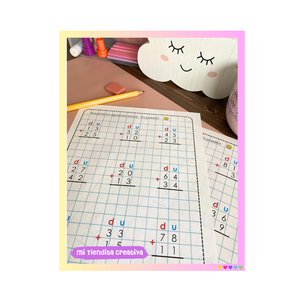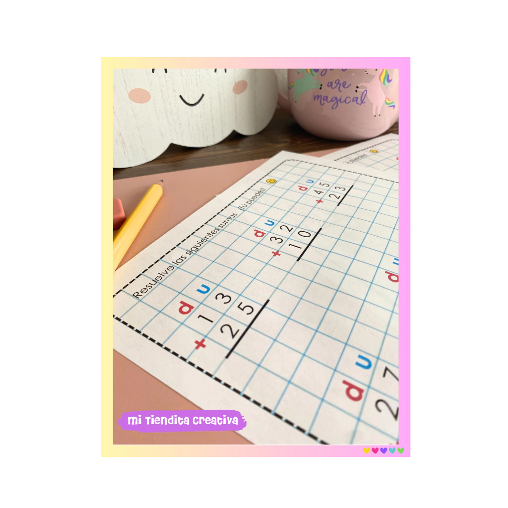 Estas hojas de trabajo están diseñadas para ayudar a tus alumnos a practicar y reforzar sus habilidades en suma, centrándose específicamente en la suma de unidades y decenas.
