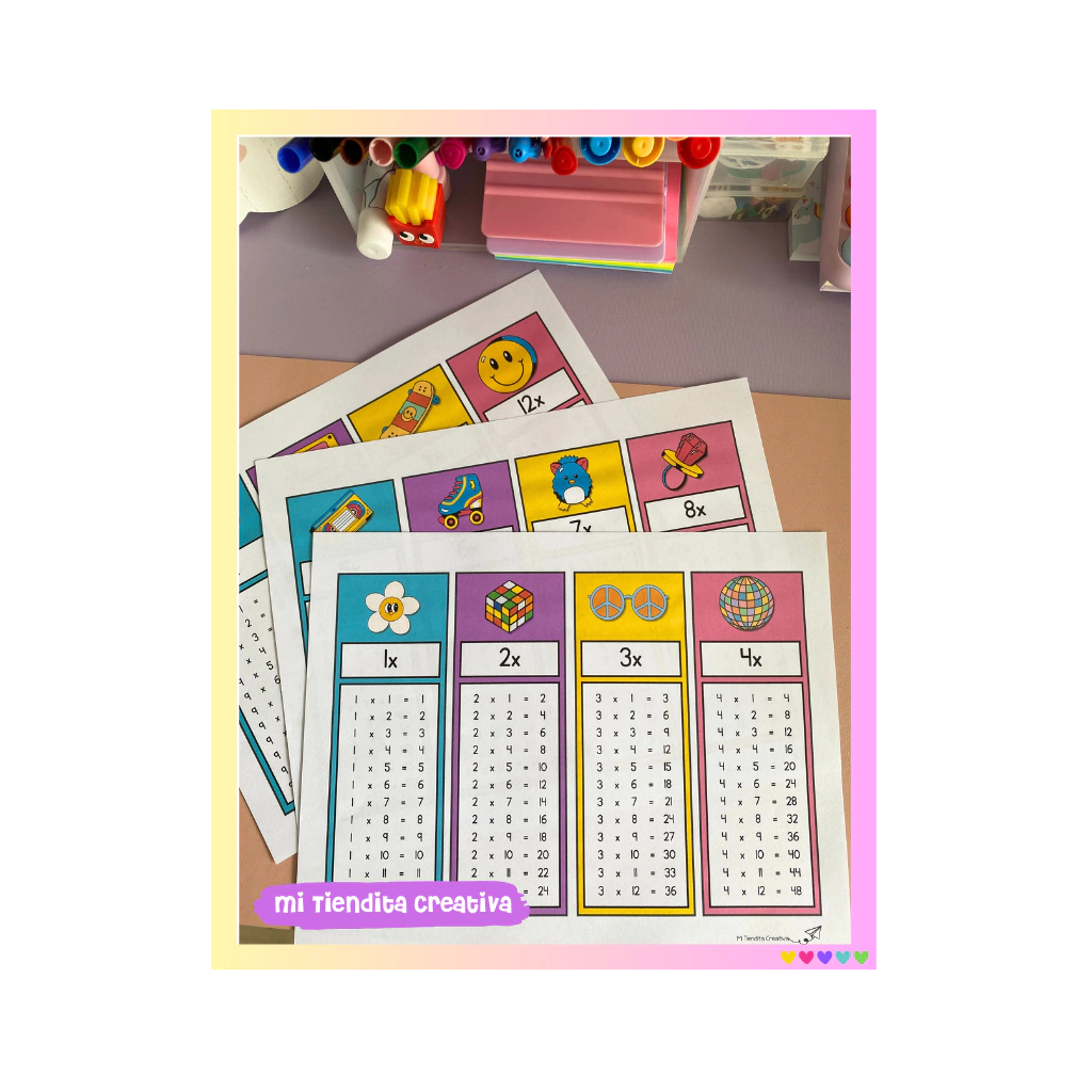 ¡Descarga gratis estos llaveritos de multiplicaciones! Son perfectos para que tus alumnitos los lleven a todas partes y repasen sus tablas de una forma divertida y práctica. Con un diseño retro cool, seguro les encantarán y harán que el aprendizaje sea más ameno. ¡Un recurso súper útil y lleno de estilo! 📚✨