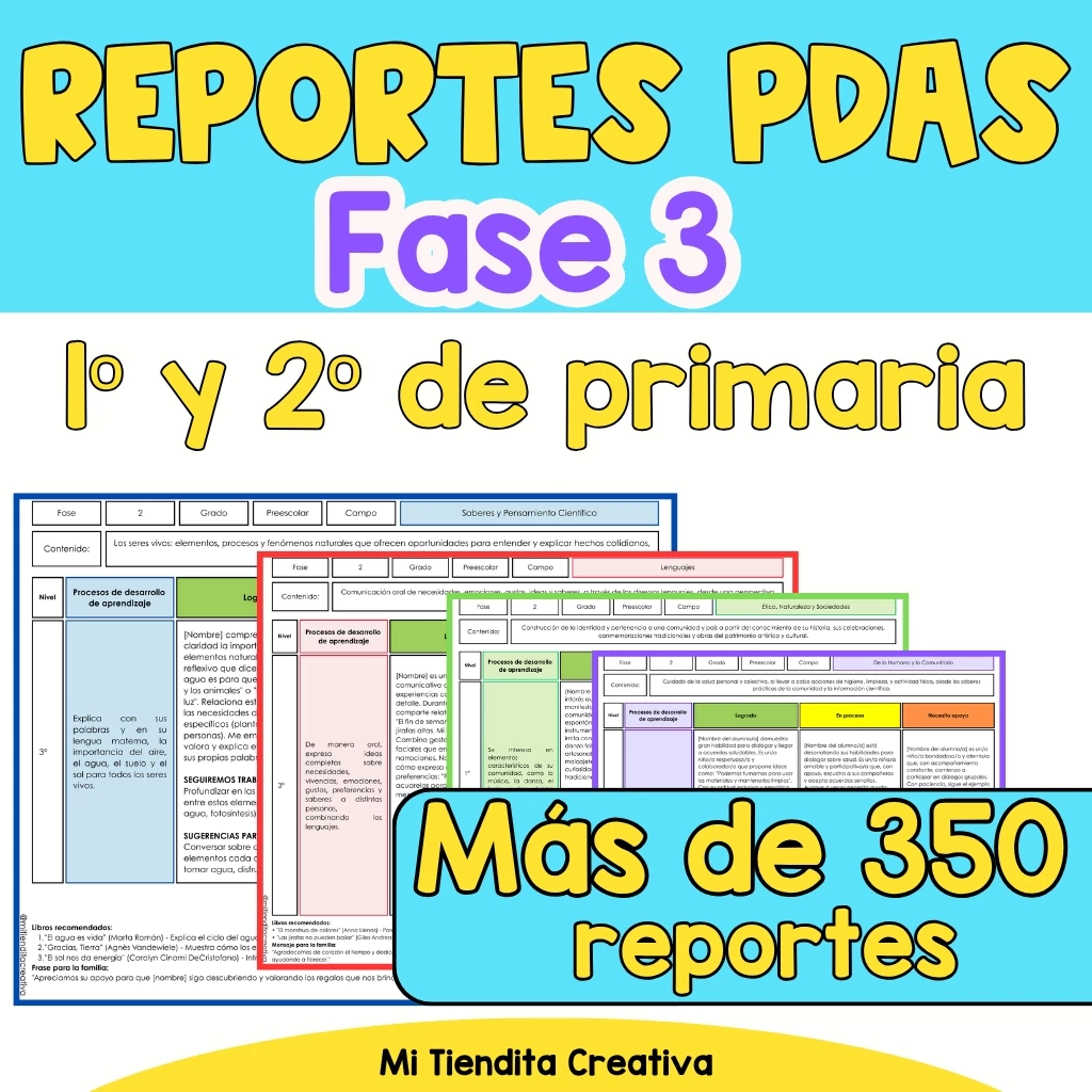 ✅ Reportes completos de todos los PDA de Fase 3 (1º Y 2º DE PRIMARIA)