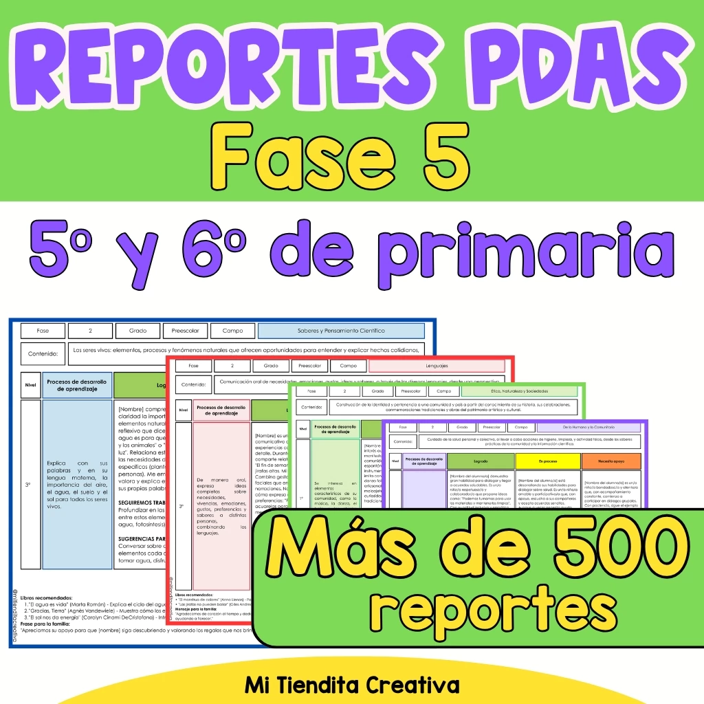 ✅ Reportes completos de todos los PDA de Fase 5 (5º Y 6º DE PRIMARIA)