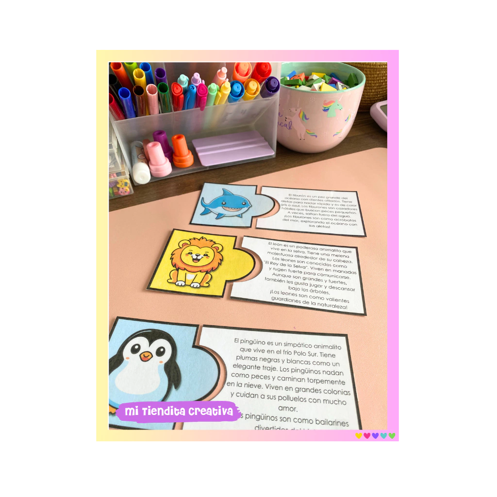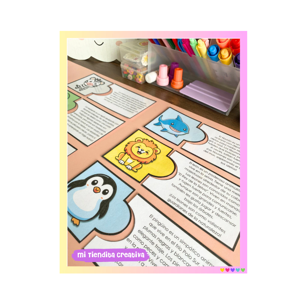 Te presento el Rompecabezas Texto Informativo Animales, una herramienta educativa emocionante para enseñar sobre la biodiversidad. Con imágenes tiernas de animales y datos informativos, este rompecabezas despierta la curiosidad y fomenta el amor por la naturaleza en tus alumnos. ¡Una forma divertida y significativa de aprender sobre el mundo animal en el aula!